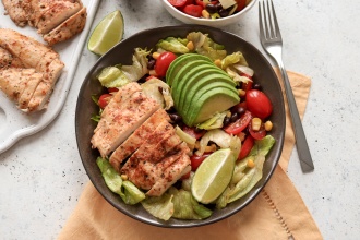Graikiškas dubenėlis su kepta vištiena ir tzatziki padažu