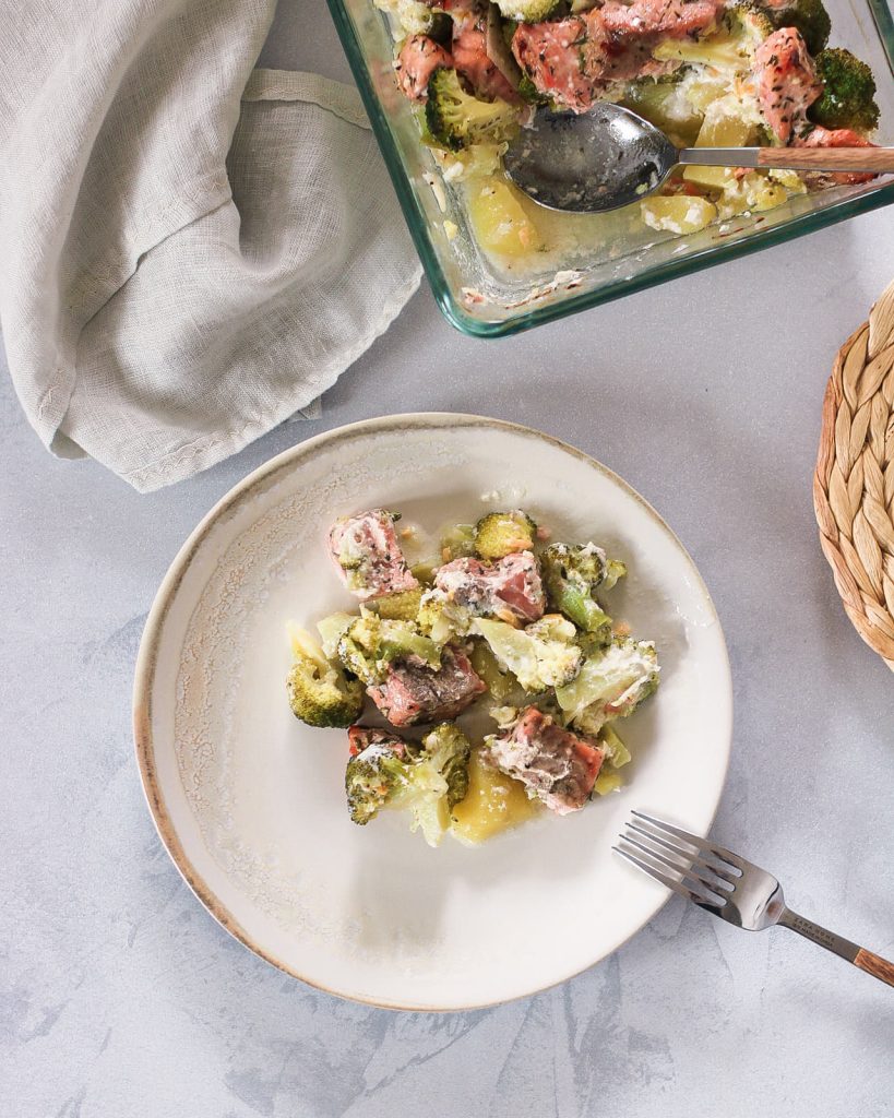 Šis brokolių apkepas su lašiša yra mažai kaloringas patiekalas, bet kartu ir sotus. Lašiša ir brokolis yra išties puikus derinys. Šiame apkepe yra ir keletas bulvių. Nors šiuos ingredientus dažniausiai valgau atskirai pagamintus, bet šį kartą iš jų pagaminau apkepą.