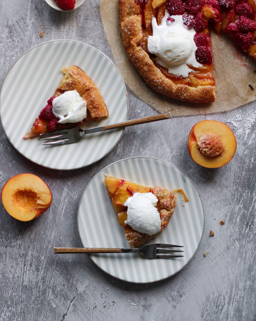 Ši galetė su nektarinais yra labai vasariškas kepinys, kuris greitai dingsta nuo stalo. Kepiau iš karto dvi galetes: vieną su nektarinais, o kitą – dar ir su avietėmis.