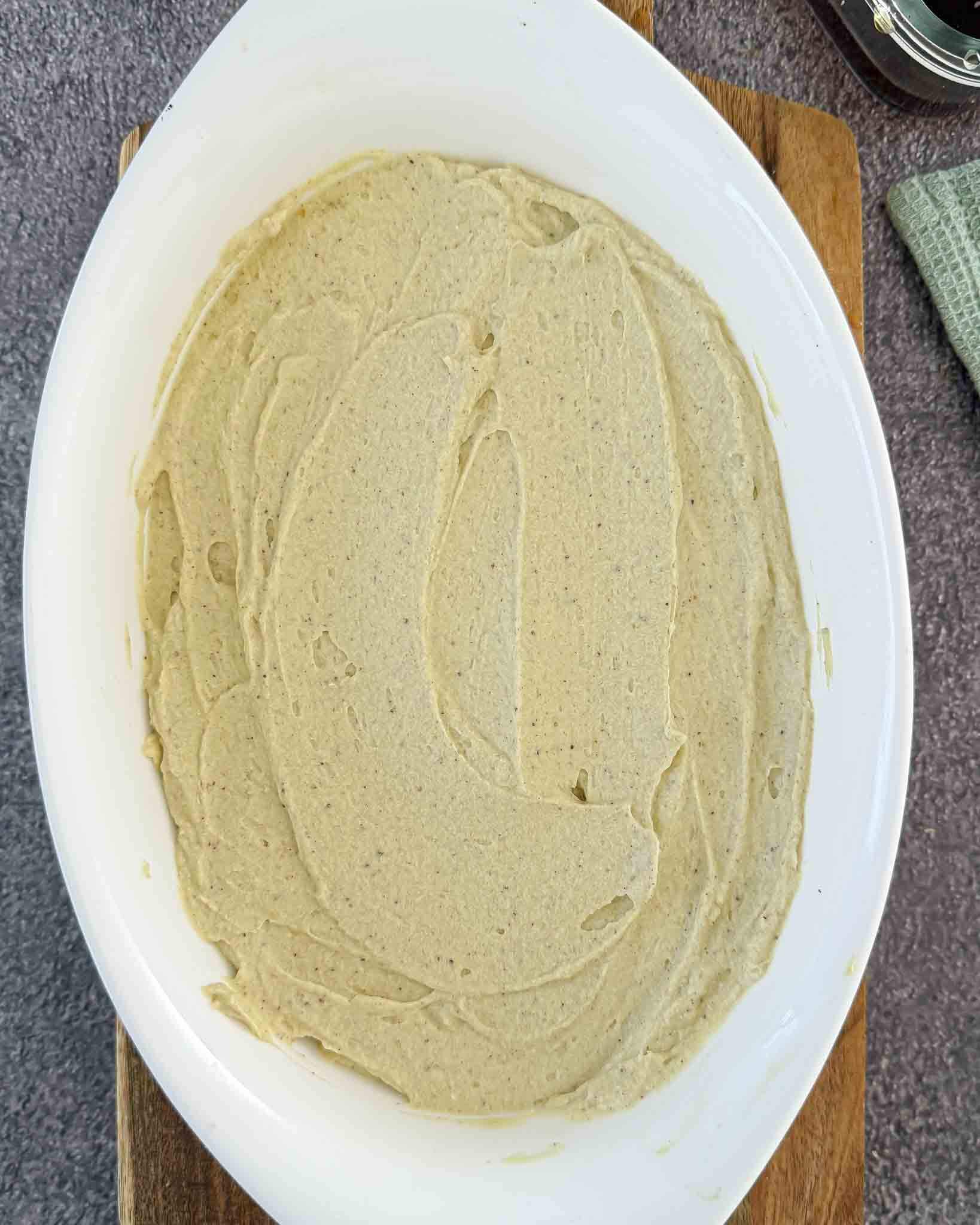 Dideliame inde mentele išmaišome maskarponę (jeigu sunku maišyti, galima įpilti truputį grietinėlės). Sudedame pistacijų sviestų ir viską išmaišome.