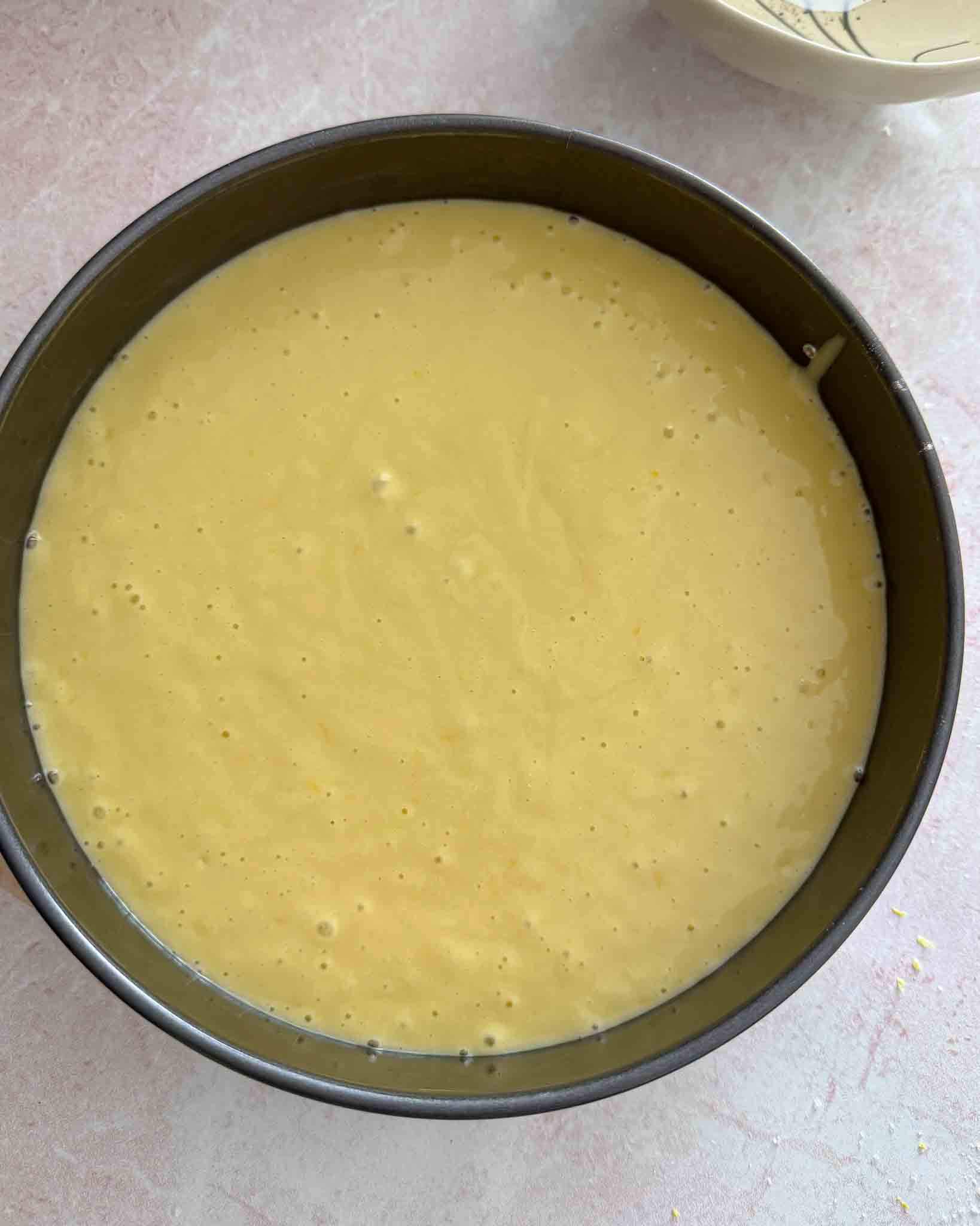 Į kepimo formą (22 cm) įdedame kepimo popierių, apačią pabarstome miltais, šonus patepame aliejumi. Supilame tešlą. Kepame 180 C įkaitintoje orkaitėje apie 40–45 minutes ar kol įdurus pagaliuką, jis liks sausas.