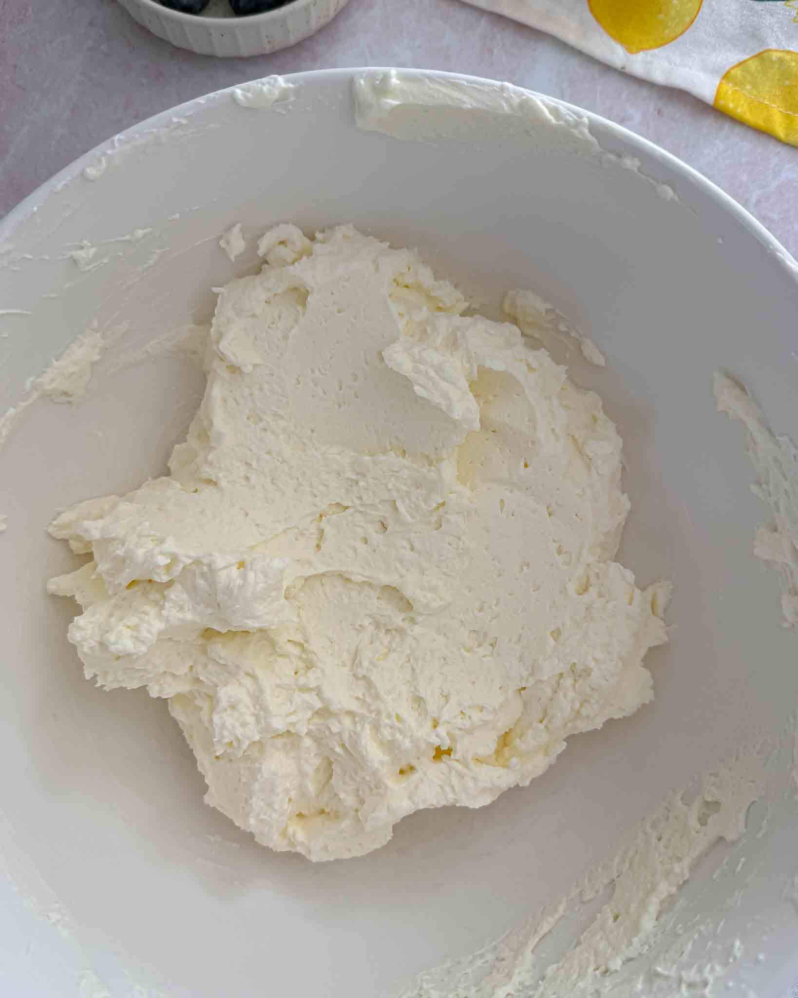 Sudedame kambario temperatūros maskarponę ir viską išplakame.