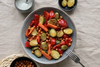 Šios salotos yra tikrai sočios ir gali būti pietų idėja, nenorintiems mėsos, pieno produktų. Jose daug daržovių, o avinžirniai yra puikus augalinės kilmės baltymų šaltinis. Padažą dariau iš anakardžių. Juos pamirkiau vandenyje, o tada sutryniau maisto smulkintuve. Jį galima keisti graikišku jogurtu. Daržoves kepiau dviejose skardose, nes didesnis kiekis į vieną netilpo. Morkas reikėtų supjaustyti […]