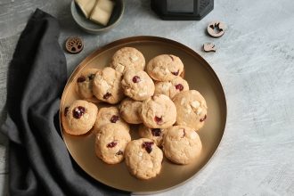 Sausainiai su baltuoju šokoladu ir spanguolėmis